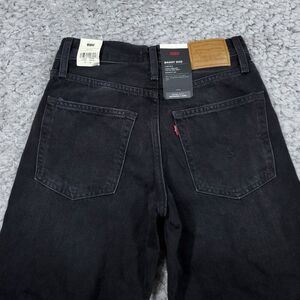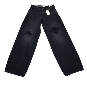 Levi's Premium Baggy Dad loose relaxed fit y2k style straight leg jeans in black "Rake It Up". Distressed, destroyed, or busted knees. Style number A3494-0018. New with tags. Women's size 24x30, real measurements shown in photos with jeans laid flat: