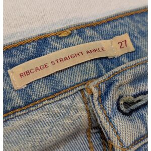 KEYWORDS: Levi’s Premium, Ribcage Straight Ankle, high rise jeans, button fly, raw hem, cropped straight, women’s 27, medium wash, 90s vibe, classic denim