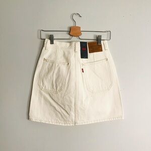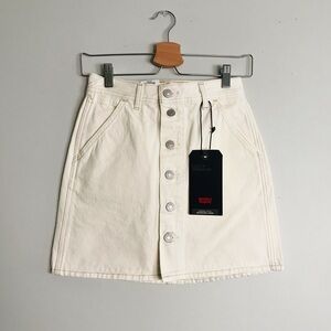 A subtle twist on a timeless silhouette fresh from the denim experts at Levi's, this button front miniskirt upgrades a classic style with utilitarian pockets for a modern version of a versatile favorite.