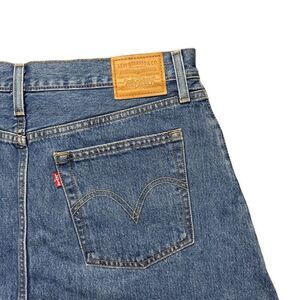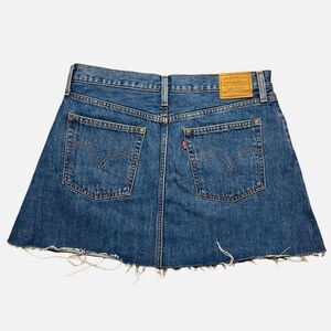 This Levi’s Premium High-Rise Button-Front Denim Mini Skirt is the perfect blend of classic style and modern edge. Made from 100% cotton, this A-line skirt features a medium blue wash, full button-front closure, and a raw, frayed hem for an effortlessly lived-in look.