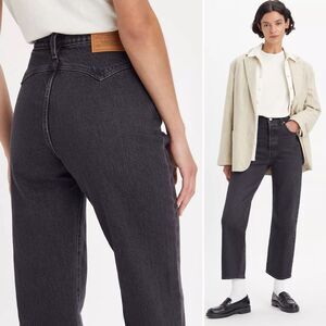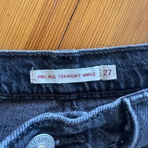Levi’s Premium Denim Ribcage Straight Ankle No Back Pocket Jeans in Washed Black