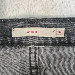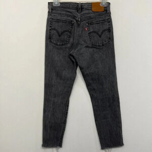 Levi's Premium Fray High Rise Button Fly Wedgie Black Gray Jeans Ankle Crop