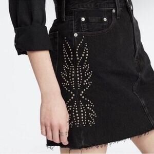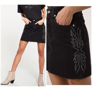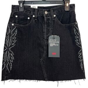 Levi's Premium High-rise deconstructed denim mini skirt Studded Black NWT