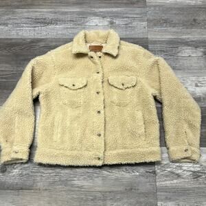 Levi's Premium Jacket Red Tab Cream Womens L Sherpa Fleece Deep Pile Trucker