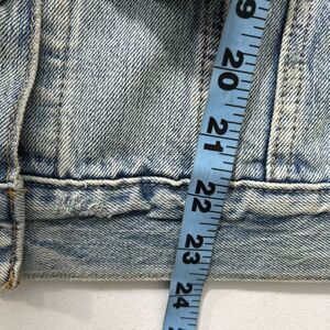 The Levi's Premium Jean Jacket in women's size M is a stylish denim trucker jacket featuring a button closure and a collared neckline. Made from 100% cotton denim, this jacket is lightweight and perfect for all seasons. The blue color and solid pattern give it a classic cowboy theme, while the logo accents and signature Levi's brand add a touch of sophistication. Ideal for various occasions from casual to formal, this jacket is a versatile and timeless addition to any wardrobe. Easy to care for with machine washable instructions, this Levi's jacket combines comfort and style effortlessly. StreetwearOuterwear