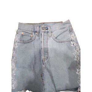 Levi's Premium Jean Mini Skirt Deconstructed Embroidered Light Wash Women's 24