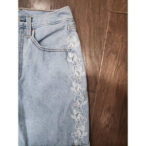 Elevate your wardrobe with this stunning mini skirt from Levi's. The light wash denim is beautifully embroidered with floral accents and features a high-rise waist with button closure. The skirt has pockets, making it practical for both party/cocktail and casual occasions.
