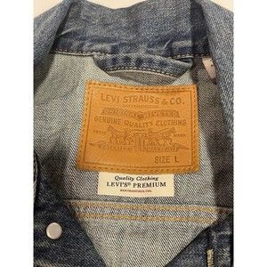 This Levi's Premium men's blue denim jacket is a stylish addition to any wardrobe. Made with high-quality cotton, this jacket features a solid pattern and a button closure. It is perfect for any occasion, whether you're traveling, going to a party or a cocktail, or simply running errands.