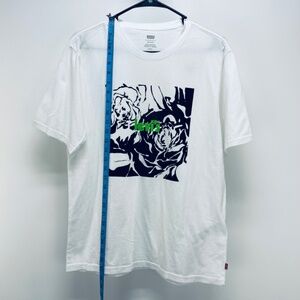 Elevate your casual look with this Levi's® Premium Men's Relaxed Fit T-Shirt in White. The graphic print pattern, crew neck, and short sleeves make it a perfect choice for any season. This machine washable T-shirt is made of soft cotton material and features a stylish Levi's logo accent.