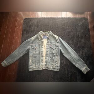 Levi’s Premium Mens S Sherpa Lined Denim Trucker Jacket Blue Western Light Wash
