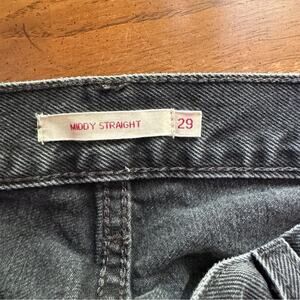 Levi’s Premium Middy Straight Black Wash Jeans in a size 29. Has a front zipper and button closure. Five pockets and five belt loops. 100% cotton. Measures approximately 15 1/2” flat lay waist, 9 1/2” rise, 27 1/2” inseam. In great condition.