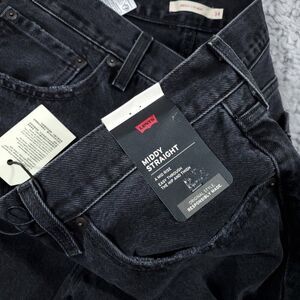 Levi's Premium Middy Straight mid rise straight leg jeans in "No Service" black 100% cotton nonstretch denim. New with tags. Style number A46900000. Women's size 34x31, real measurements with jeans laid flat: