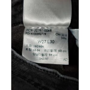 A Pair of Levi's Premium Mile High Super Skinny black jeans with rhinestones down the legs. These are distressed down the front legs. 69% cotton 24% Viscose 6% polyester and 1% elastane. A 27" waist and 30" inseam with a 10" rise. They are in very good pre-owned condition.