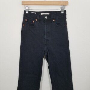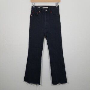 Levi's Premium RIBCAGE Crop Flare High Rise Button Fly Raw Hem Jeans Black 25