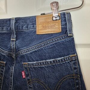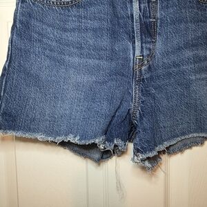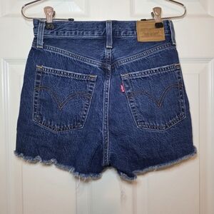 Levi's Premium RIBCAGE Shorts Blue Button-Fly Frayed Hem Size 26