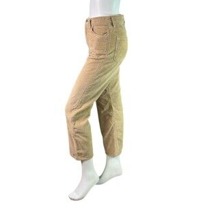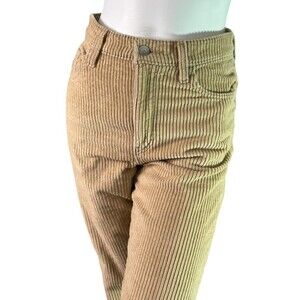 This is a pair of Levi's Premium Ribcage Straight Ankle Corduroy Jean in granola tan. Wide wale corduroy. Size 26. Excellent condition. Fabric: 100% cotton. Measurements;