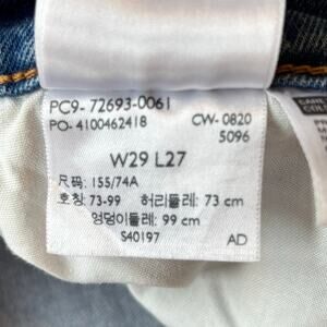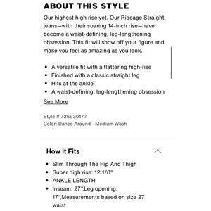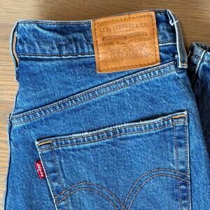 Levi's Premium Ribcage Straight Jeans Ankle Length Womens Size 29. 99% cotton, 1% elastane - low stretch. Heavy, durable, and comfortable. Minor distress on one knee and front pocket (STOCK PHOTO SHOWN FOR FIT, DIFFERENT COLOR). Button fly. High rise. Ankle length. Regular fit. Excellent used condition. Smoke free home. NEXT DAY SHIPPING.