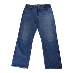 Levi's Premium SZ 28 Wedgie Straight Cropped Raw Hem Button Fly Blue Jeans #1368