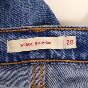 Levi's SIZE 28 Wedgie Straight Cropped Raw Hem Button Fly Blue Jeans #1368