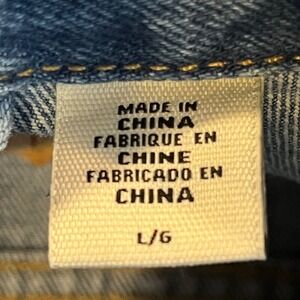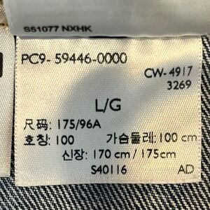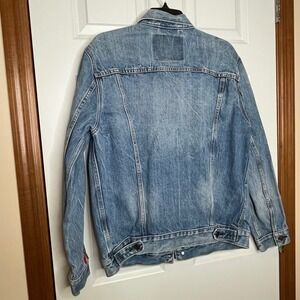 Levis Premium Trucker Jacket Mens Large Blue Denim Logo Tape Sleeve Stripe L