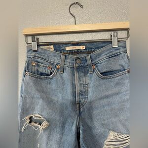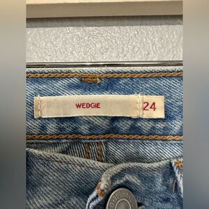 Levis Premium Wedgie Ankle Icon Blue Hi Rise Raw Hem Distressed Size 24