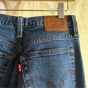 Levi’s Premium Wedgie High Rise Jeans Distressed Ripped Knee Dark Denim Size 28