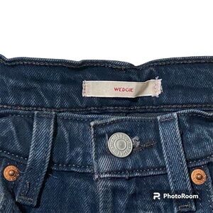 Levi’s Big E Premium Wedgie Icon Fit High Rise Ankle Jeans in Wild Bunch - Dark Wash. It's the name you can't forget: Levi's Wedgie Fit. This vintage-inspired style includes special construction to highlight your curves and give your butt an extra lift. Trust us, you need these jeans in your closet. The cheekiest jeans in your closet made with a flattering tapered leg. Designed with a special construction to lift and flatter your backside. Fitted through the hip and thigh. Very light wash wear, otherwise in excellent pre-owned condition.