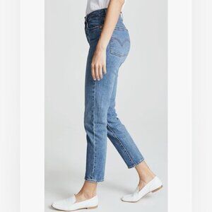 Levi's Premium Wedgie Icon Tapered Leg Low Stretch Cropped Blue Denim Jeans