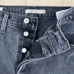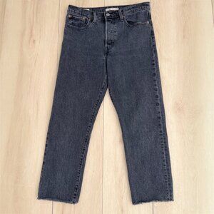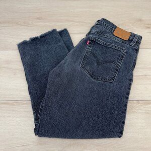 Levi’s Premium Wedgie Straight Cropped Raw Hem High Rise Button Fly Vtg Black 30
