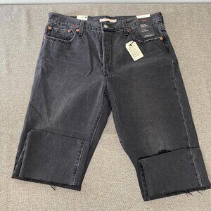 Levi's Premium Wedgie Straight Denim Jeans Women 32 Black Distressed Raw Hem NWT