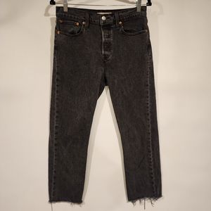 Levi's Premium Wedgie Straight Jeans High Rise Raw Hem Black Washed Pant sz 30
