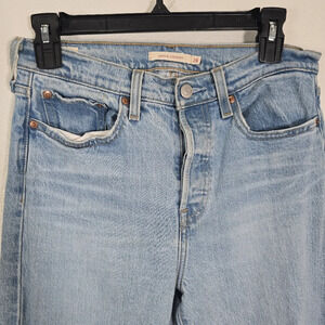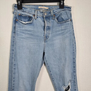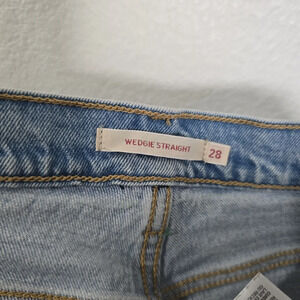 Levi's Premium Wedgie Straight Jeans Size 28 Medium Wash Distressed Button Fly