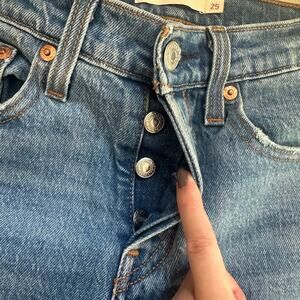 Levi's Premium Wedgie medium wash ripped high waisted straight leg jeans 25
