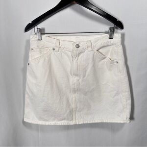 Levi’s Premium White Denim Mini Skirt Raw Hem Y2K Minimalist Size 29