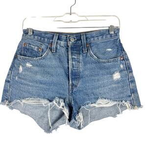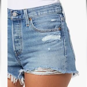 Levi's Premium Women's 501 Original Shorts In Blow Big Horns Wash Distressed 24