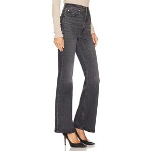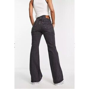 Levis Premium Womens Denim Jeans 70s High Rise Flare Black Gray Wide Leg NWT