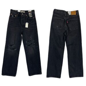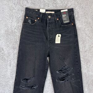 Levi's Premium Women's Size 27 Black Distressed Ribcage Straight Leg Ankle Jeans