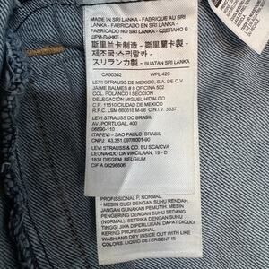 Levi’s Premium Original Trucker denim jacket in classic light wash. Women’s size XS. Distressed seam accents, button front, flap chest pockets, side slit pockets, and adjustable waist tabs. Style code PC9-29945-0026. Made in Sri Lanka.
