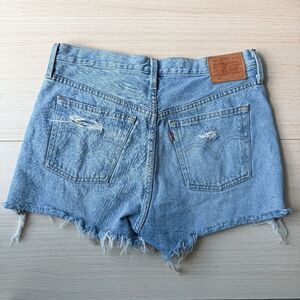 Levi's Premium 501 Button Fly W29 Light Blue Women Jean Shorts Frayed Distressed