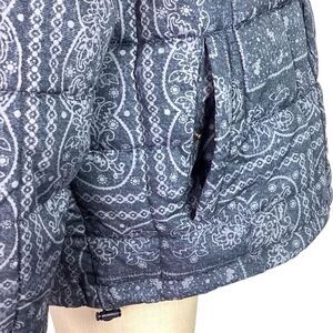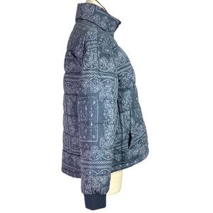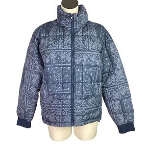Levis Puffer Jacket Women M Faded Blue Paisley Bandana Box Quilted Zip Up NEW