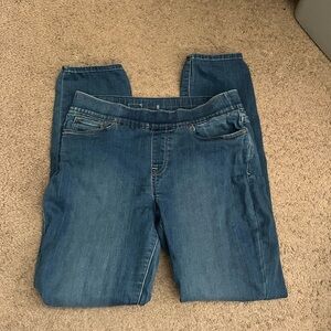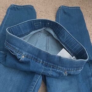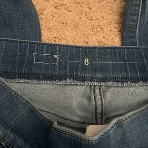 Levi’s brand pull on elastic waist skinny jeans. Jeans are a size 8. In good used condition.