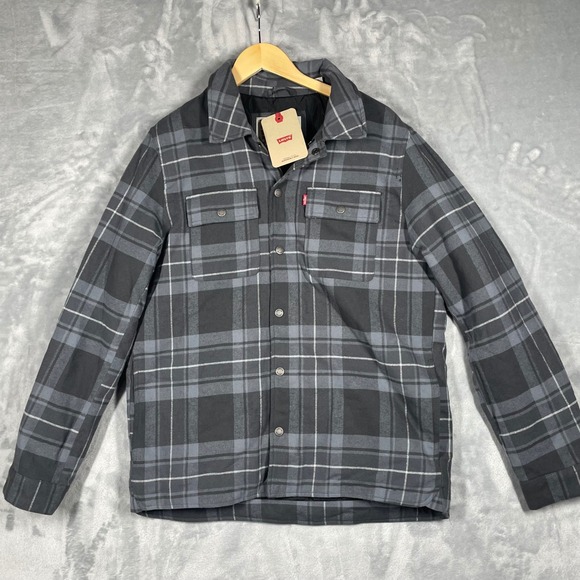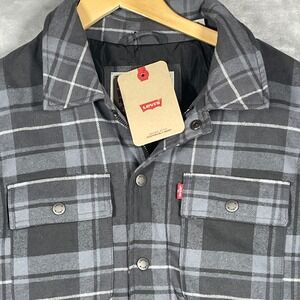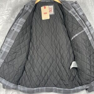 Levi's Quilted Lined Snap Zip Flannel Shacket Mens Large L Gray Plaid Jacket