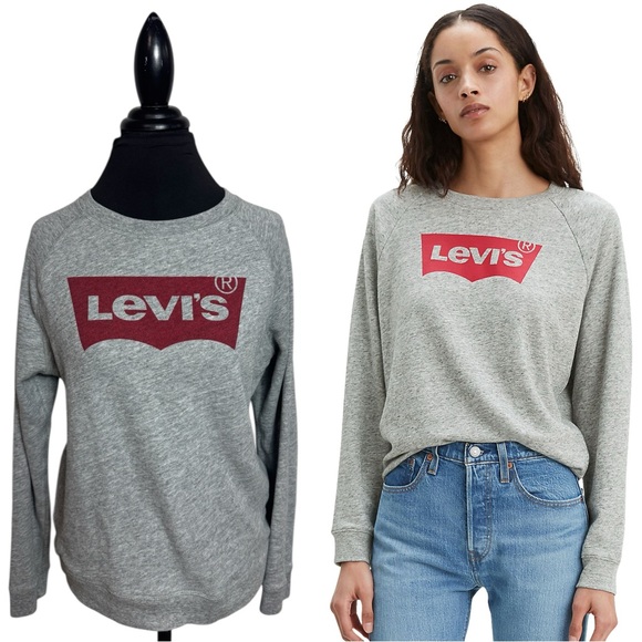 Levis raglan crewneck pullover logo sweatshirt in heather gray.