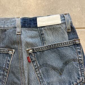 Levis Re/Done Button Fly Jeans Women’s Sz 24 Relaxed Blue Patchwork Indigo 27”