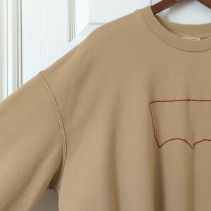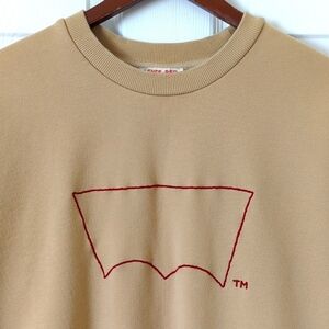 Levi's Red Embroidered Oversized French Terry Pullover Crewneck Sweatshirt Tan M