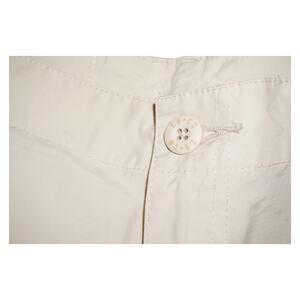 Timeless pair of Levi Strauss & Co. Red Tab cargo shorts in a light beige tone. Made from a durable cotton–nylon blend for comfort and longevity. Features side cargo pockets, rear flap pockets, belt loops, and zip fly with branded LS&CO button. Made in Macau.