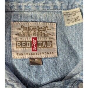 Levis Red Tab womens denim shirt in size Medium. Vintage Y2K/90s style with classic workwear-inspired design. Made from durable denim with a button-up front and chest pockets. Perfect for casual layering, retro outfits, or jean-on-denim looks.