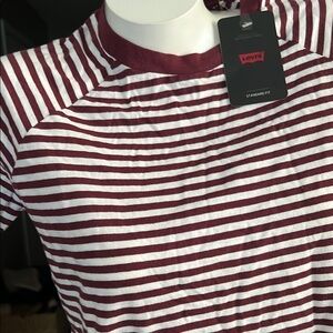 This Levi's t-shirt showcases a striking red and white color palette with a fitted design and short sleeves. Crafted for comfort, it offers a snug fit perfect for casual outings. The timeless style ensures it remains a versatile addition to any wardrobe.