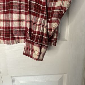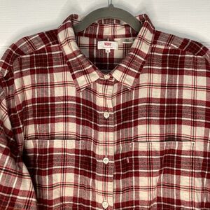 Levis cropped flannel shirt. Red, white, and black plaid. Two front chest pockets. Women's size XL.