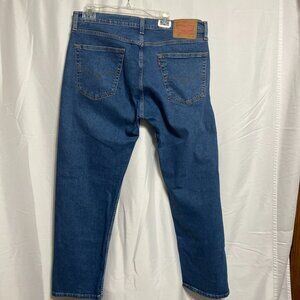Levi's Regular Fit (505) 36x30 Blue Jeans. Crafted from a comfortable cotton. Dark wash. Listed size: 36x30. Approximate hand measurements — waist: 36", inseam: 29.5". Gently worn with minimal signs of previous use.